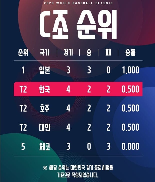 0.006차이로 갈린 운명! 대만전 패배가 '8강 티켓'이 된 WBC 기적의 수학